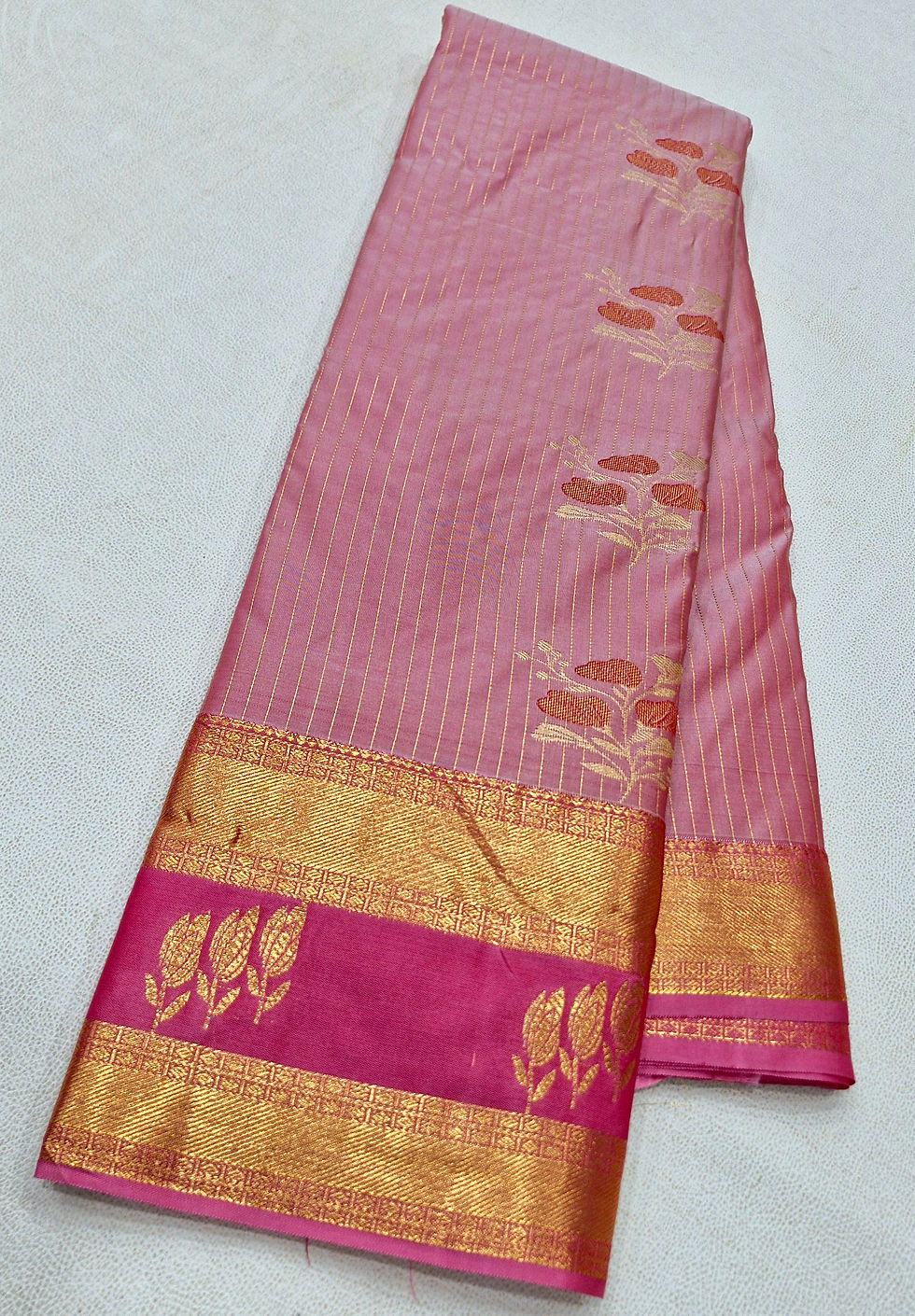 Purple colour with golden mustard colour Kanchipuram pattu saree