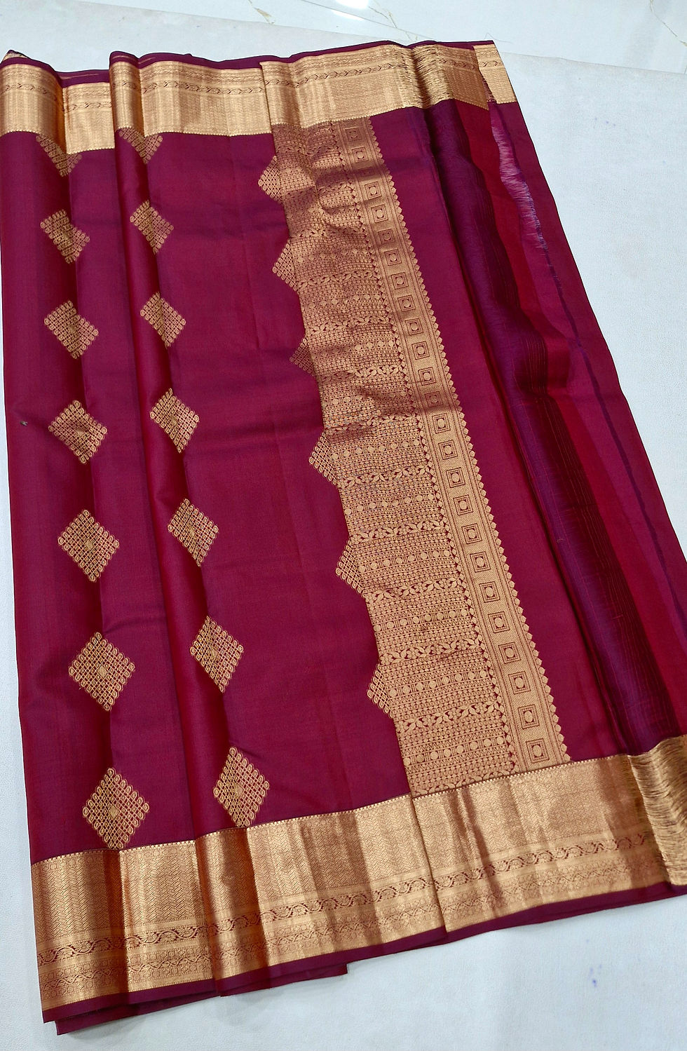 Brinjal colour Kanchipuram beautiful soft silk saree