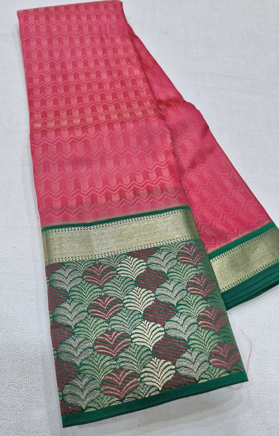 Pink colour with parrot green colour Kanchipuram pure silk saree